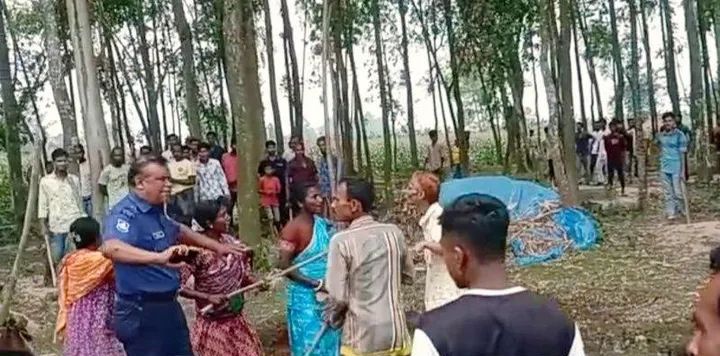 দিনাজপুরের বীরগঞ্জের পাল্টাপুর ইউনিয়নের ঘোড়াবান্দ গ্রামের কাদেরের ছেলে রেজাউল ও আজগর সাহাজীর ছেলে আজাদের নেতৃত্বে দেড়/দুইশো ভাড়াটিয়া স*ন্ত্রাসী বাহিনী নিয়ে সনকা খ্রিস্টান পাড়ার আদিবাসীদের শ্মশান কালী মন্দির ভাঙচুর করে কালী মূর্তিটি ভেঙ্গে পার্শ্ববর্তী ভুট্টা ক্ষেতে ফেলে দেয়ার অভিযোগে এ ঘটনার পর আদিবাসীদের কবরস্থানের জমির গাছ কাটা এবং জমি দখলের জন্য এলে আদিবাসীরা বাধা দেয়।