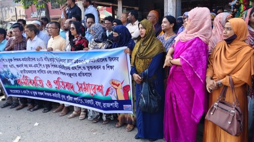 শিক্ষকদের বিভিন্ন দাবিতে বানেশ্বরে মানববন্ধন ও প্রতিবাদ সমাবেশে