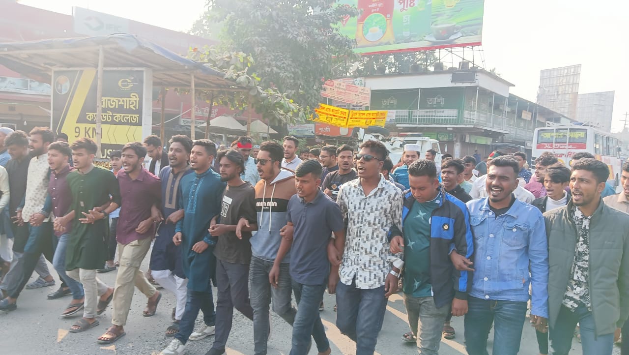 রাজশাহীর পুঠিয়া উপজেলার বানেশ্বরে ইনকিলাব মঞ্চের সভাপতি শরিফ ওসমান হাদির মৃত্যু ও তার ওপর হা*মলার ঘটনায় জড়িতদের গ্রেফতার ও দৃষ্টান্তমূলক শাস্তির দাবিতে বিক্ষোভ মিছিল অনুষ্ঠিত হয়েছে।